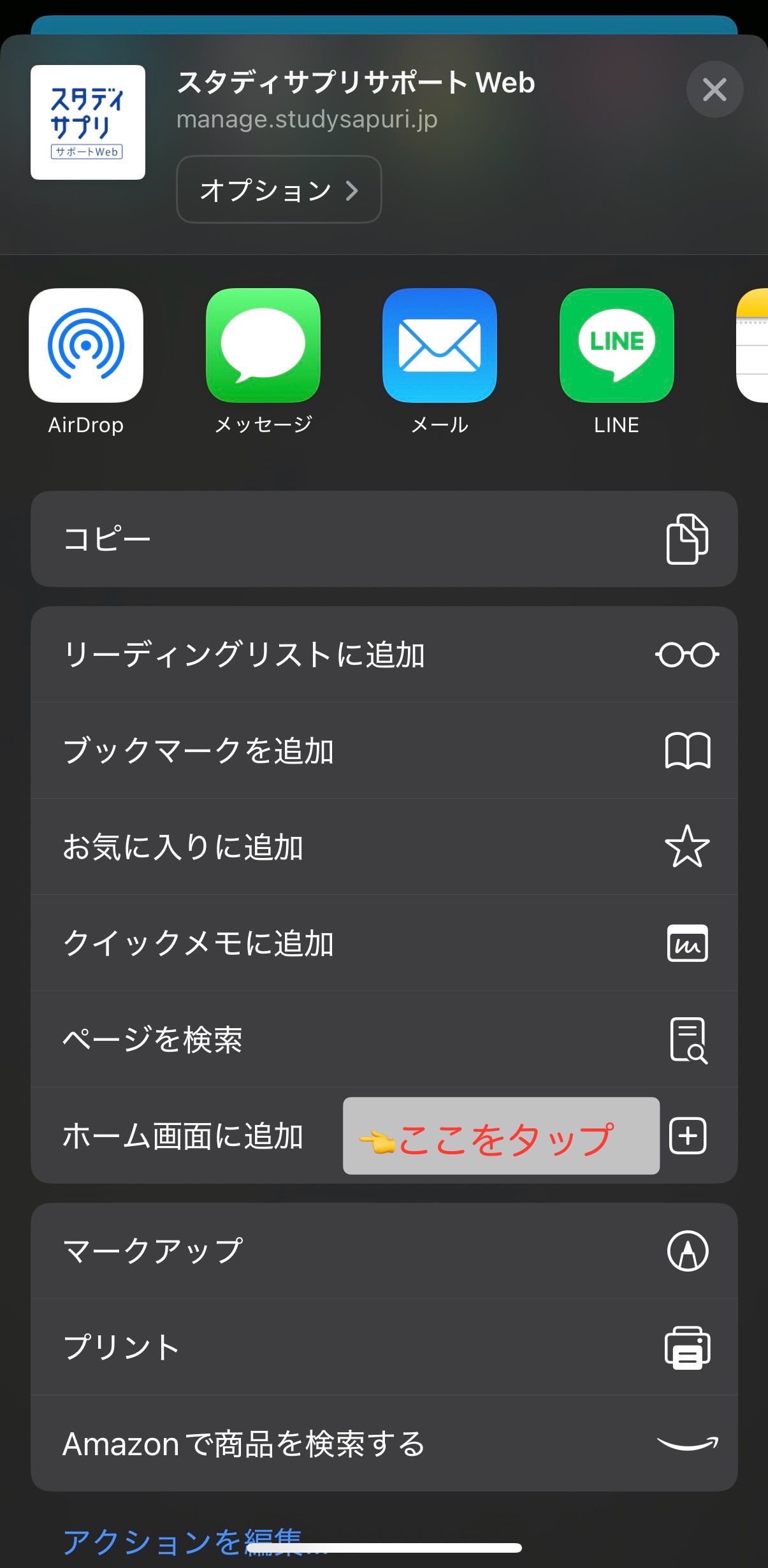 (iPhoneの手順:共有ボタン > ホーム画面に追加)